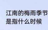 1、江南梅雨季节是每年6、7月份。梅雨季节,是在每年6、7月份的东南季风带来的太平洋暖湿气流。2、经过中国长江中下游地区、中国台湾地区 ....